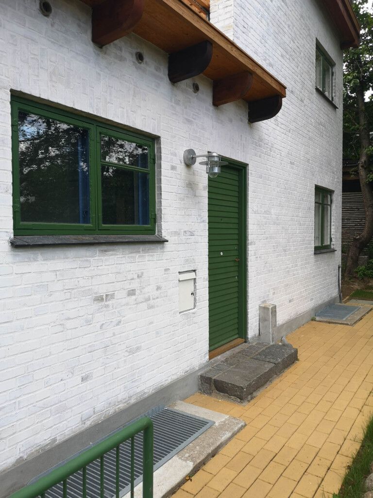 Det farverige interiør og vinduernes chromoxidgrønne farve er genskabt ud fra farvearkæologiske undersøgelser, og fremhæver husets funktionalistiske præg fra opførelsestidspunktet i 1939. Udover farverne, tilføjer de skrå tagflader og variationen af vinduestyper karakter og subtilt særpræg til hvert enkelt rum i den moderne planløsning.