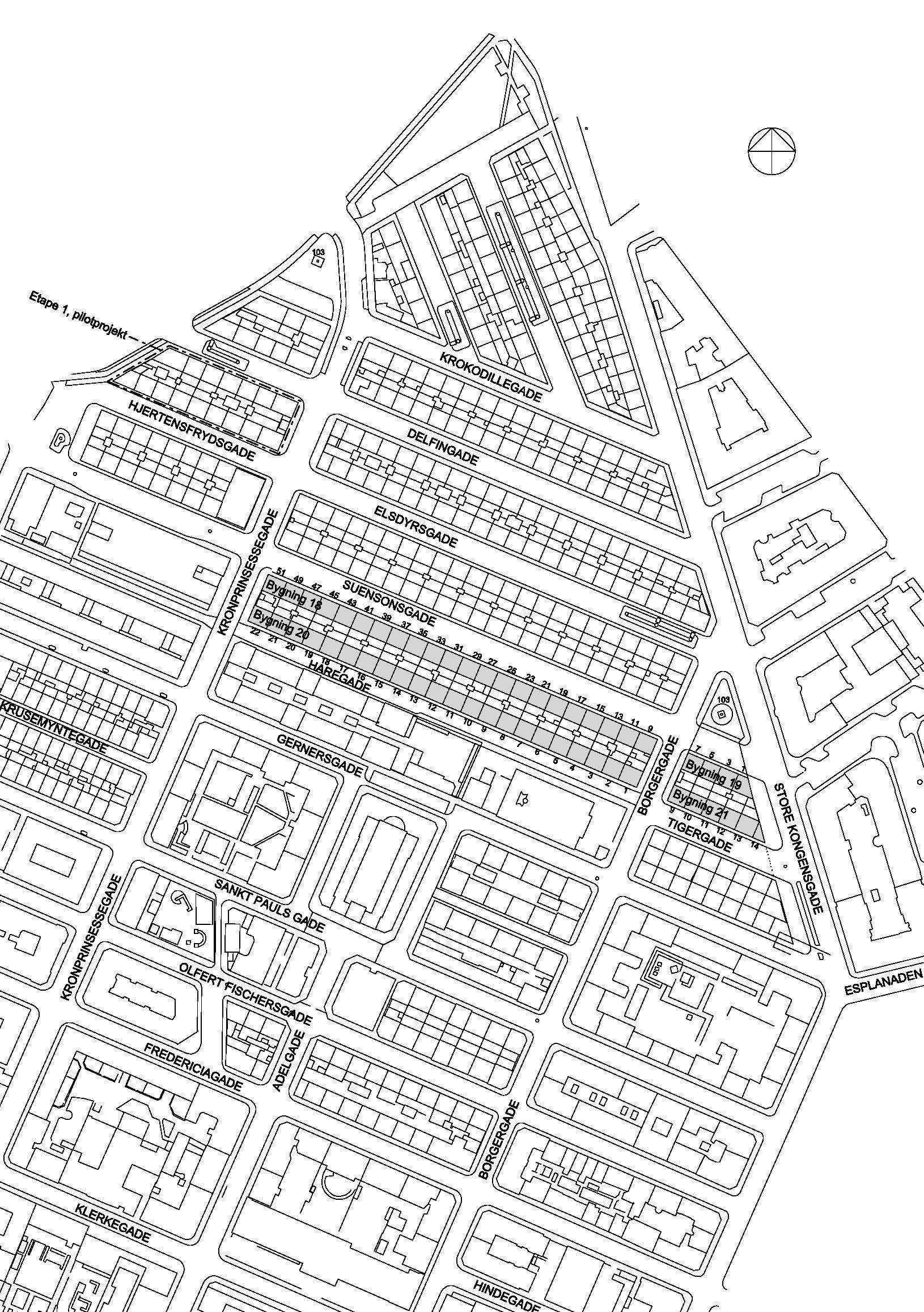 Nærværende projekt har omfattet fire stokke i Suensonsgade, Haregade og Tigergade, hvor ovenstående problematikker er håndteret.
